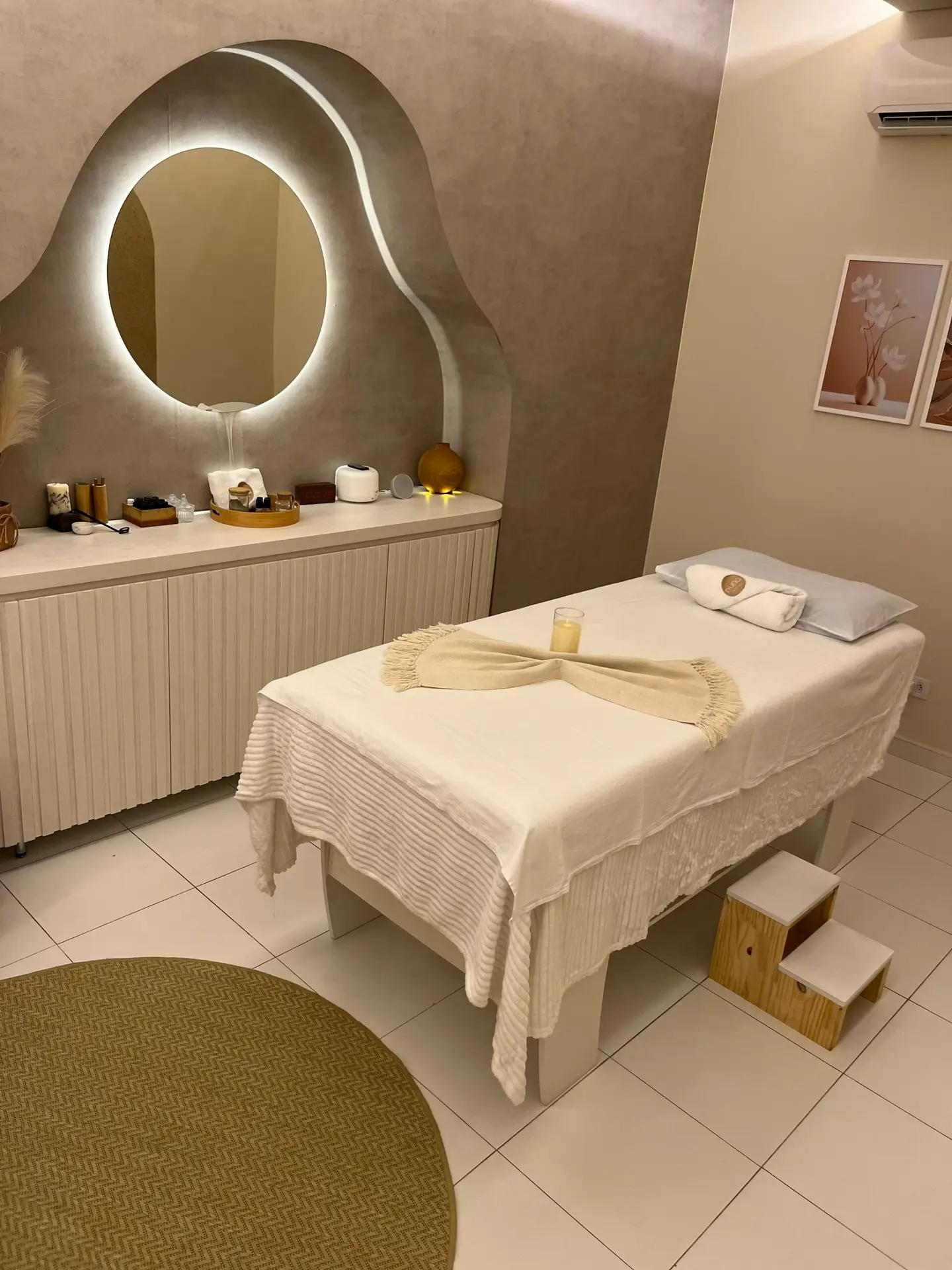 Um espaço pensado nos mínimos detalhes para desacelerar o tempo. Luz, aromas e sons criam uma atmosfera de conforto, privacidade e cuidado absoluto.